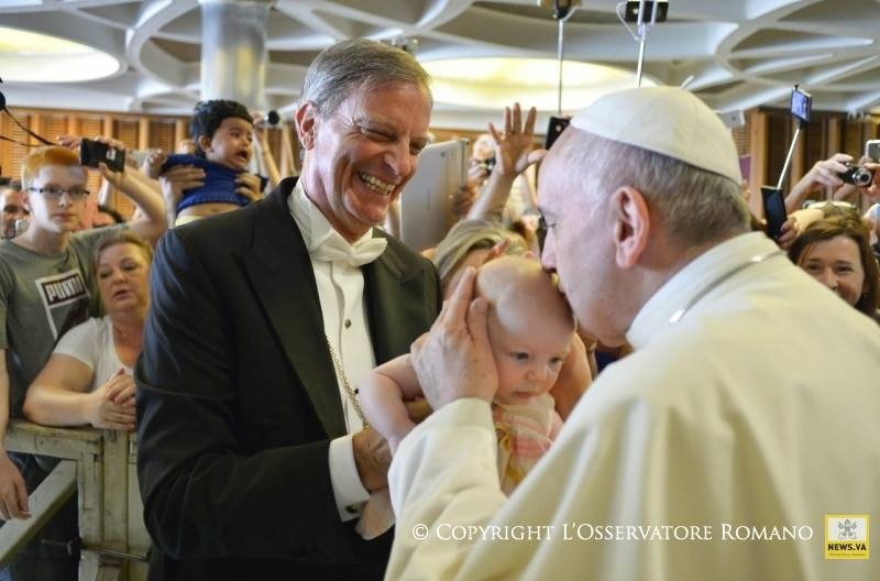 Előfordulhat, hogy nehéz vagy fájdalmas körülmények között ér minket egy ünnep, és legfeljebb „gombóccal a torkunkban” tudunk ünnepelni. Mégis, ezekben az esetekben is, kérjük Istentől az erőt, hogy ne üresítsük ki teljesen az ünnepet. Ti, anyukák és apukák, jól tudjátok ezt: a gyermekeitek iránti szeretetből hányszor képesek vagytok megfeledkezni gondjaitokról, hogy ők örömmel ünnepelhessenek, és ízlelhessék az élet jó ízét! Mennyi szeretet van ebben!