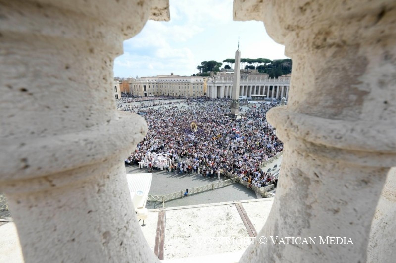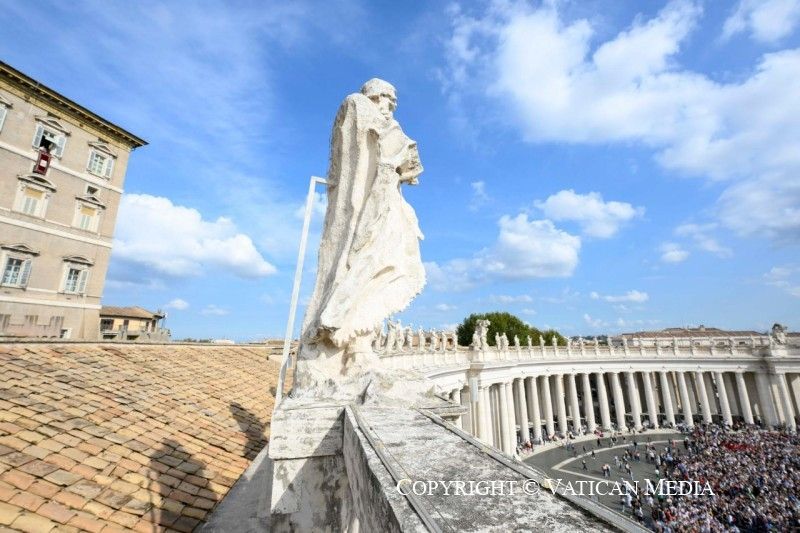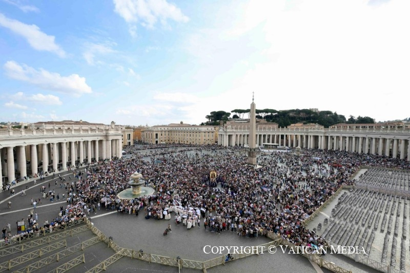 Kérlek benneteket, továbbra is imádkozzunk a békéért, különösen Ukrajnában, Palesztinában, Izraelben, Libanonban, hogy véget vessenek az eszkalációnak, és első helyre az emberi életnek, a szent emberi életnek a tiszteletét helyezzék! Az első áldozatok a civil lakosság körében vannak: ezt nap mint nap látjuk. Rendkívül sok az ártatlan áldozat! Naponta látjuk a lemészárolt gyermekekről készült képeket. Rendkívül sok gyermek! Imádkozzunk a békéért!