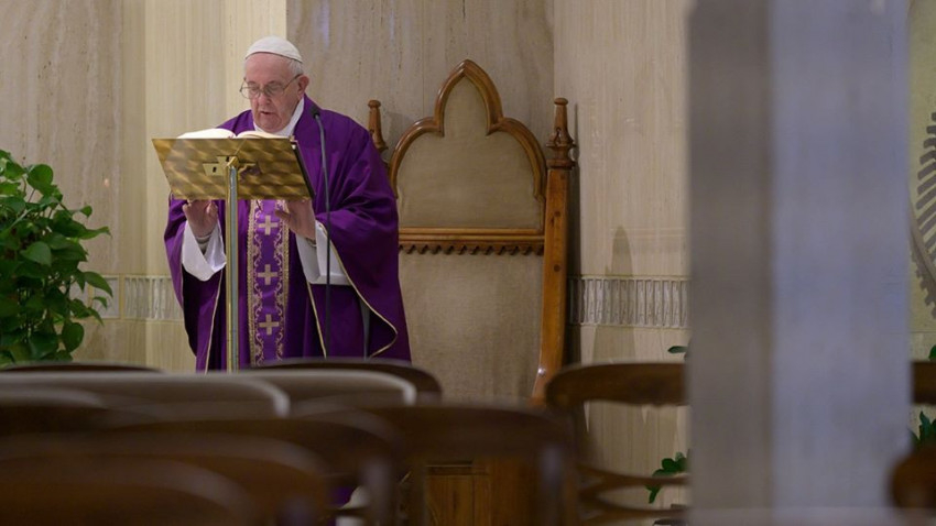 „Imádkozzunk ma azokért, akik a világjárvány miatt egyre inkább kezdik érezni a gazdasági nehézségeket, mert nem mehetnek dolgozni, és ez visszaüt a családra. Imádkozzunk azokért, akik ilyen problémákkal küszködnek!” – kérte a pápa a szentmise elején.