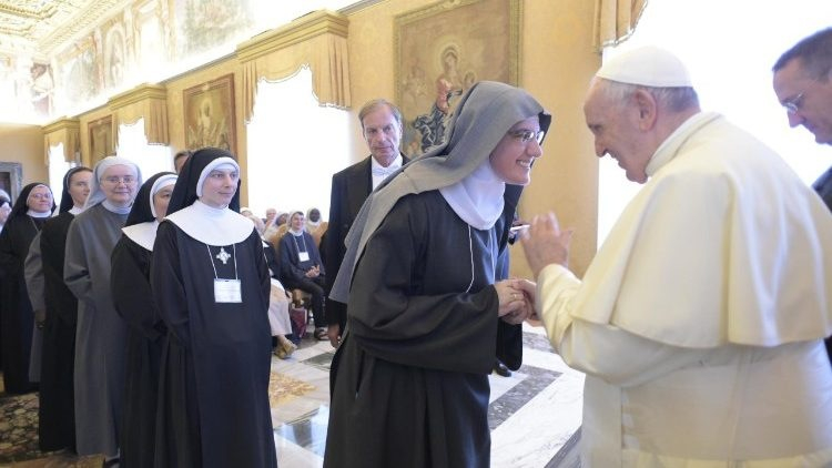 A közösségi életükről szólva kiemelte, hogy az tanúságot tesz a szeretet és a kölcsönös tisztelet fontosságáról. Mivel számos eltérő helyről érkeznek, maguk is mind különböznek egymástól, egymás kölcsönös befogadása az első jel, amit felmutatnak ennek a világnak, amely nehezen tudja megélni ezt az értéket. Imáik, tevékenységük, vendégszeretetük, nagylelkűségük kifejezésre juttatja a szeretetközösséget a sokszínűségben. Ez pedig Isten e világ iránti reményét tükrözi: az egységet, amely a békéből, a kölcsönös befogadásból és a testvéri szeretetből tevődik össze. Ferenc pápa végül azt hangsúlyozta, hogy a nővérek értékes ajándékot jelentenek az Egyház számára azzal, ahogyan a nőkre jellemző módon, Szűz Mária példája nyomán tanúságot tesznek a jóságról, a hitről, a nagylelkűségről.