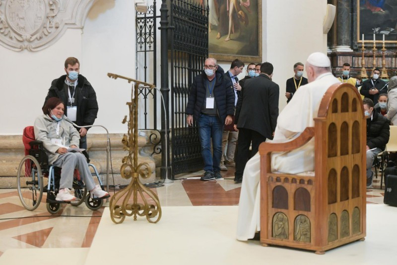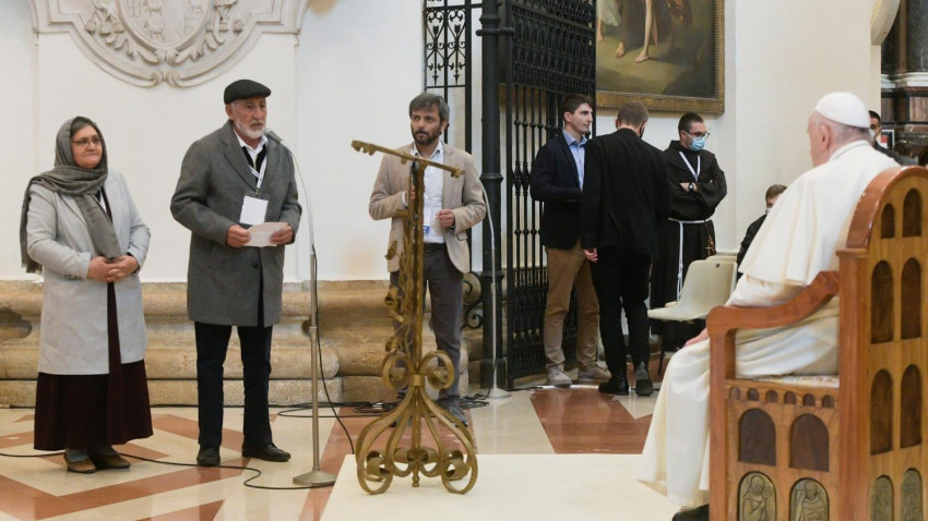 Figyelmesen hallgattam tanúságtételeiteket, és köszönetet mondok mindazért, amit bátran és őszintén elmondtatok. Bátran: mert meg akartátok osztani ezeket mindannyiunkkal, jóllehet személyes életetekhez tartoznak; őszintén: mert olyannak mutatkoztatok, amilyenek vagytok, és megnyitottátok szíveteket azzal a vággyal, hogy megértsünk benneteket. Van néhány dolog, ami különösen tetszett, és amit szeretnék valamiképpen kiemelni, hogy még inkább magamévá tegyem, és hagyjam, hogy a szívembe költözzön. Mindenekelőtt azt láttam, hogy a remény erős érzése él bennetek. Az élet nem mindig volt kegyes hozzátok, sőt gyakran a kegyetlen arcát mutatta felétek. A kirekesztettség, a betegség és a magány okozta szenvedés, a sok szükséges dolog hiánya nem akadályozott meg benneteket abban, hogy hálás szemmel tekintsetek az apró dolgokra, amelyek lehetővé tették számotokra, hogy kitartsatok.