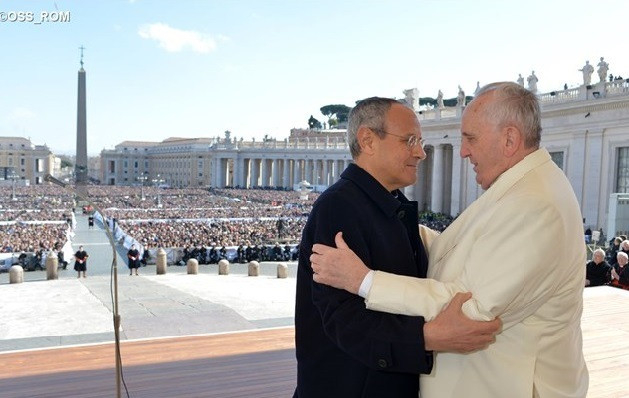 Végül Ferenc pápa a Szűzanya segítségét kérve áldását adta a Comunione e Liberazione mozgalom százezernyi, a Szent Péter téren jelen lévő tagjára.