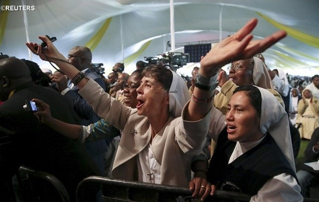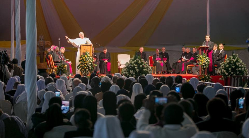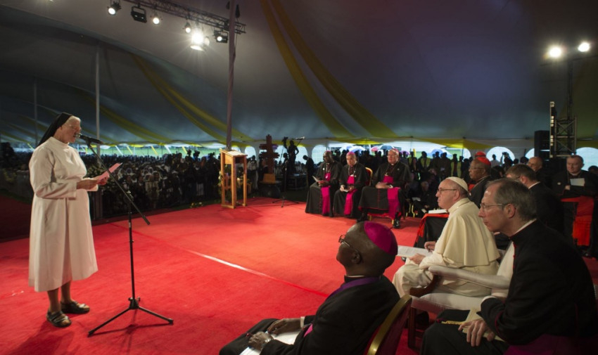 Ennek adják szép jelét azok a papok, szerzetesek és szerzetesnők, akik évtizedek óta hűséges szolgálatban töltik az idejüket, sokszor ugyanazon a helyen. Éppen ezért megköszönöm nektek, hogy bátran követitek az Urat. Köszönet minden alkalomért, mikor bűnösnek érzitek magatokat, köszönet a gyengédséggel teli simogatásért, amit a rászorulóknak adtok, köszönet azért, hogy a haldoklókat segítitek, hogy reményt adtok nekik. – mondta a kenyai papokkal és szerzetesekkel való találkozáson Ferenc pápa. – Azért is köszönetet mondok, hogy engeditek, hogy segítsenek nektek, hogy kijavítsanak benneteket és megbocsássanak nektek. És külön szeretettel köszöntöm a szeminaristákat!