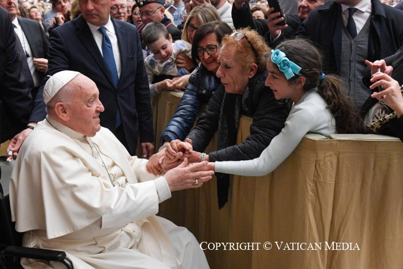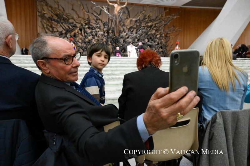 Örülök, hogy fogadhatlak benneteket, nagyszülők és unokák, fiatalok és kevésbé fiatalok. Ma megtapasztaljuk – ahogy a zsoltár mondja –, milyen jó együtt lenni (vö. Zsolt 133). Elég rátok nézni, hogy megértsük ezt, mert szeretet van köztetek. És azt szeretném, hogy éppen erről gondolkodjunk el egy kicsit: arról, hogy