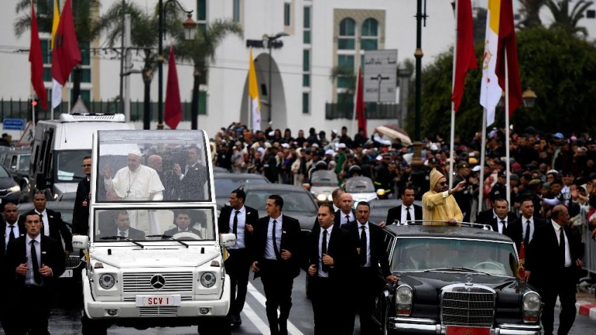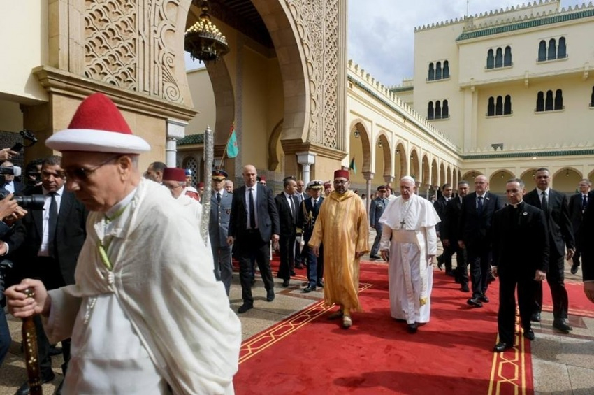 Arra kaptunk meghívást, hogy ezt az utat kövessük fáradhatatlanul, hogy együtt leküzdjük a feszültségeket és értetlenségeket, az álarcokat és a sztereotípiákat, amelyek mindig félelemhez és szembenálláshoz vezetnek. Így megnyitjuk az utat a termékeny és tiszteletteljes együttműködés lelkületének. Nélkülözhetetlen, hogy a fanatizmussal és a fundamentalizmussal szembeállítsuk minden hívő szolidaritását; cselekedetünk felbecsülhetetlen vonatkozási pontjai legyenek azok az értékek, amelyek közösek számunkra – szögezte le a pápa. Örömét fejezte ki, hogy e gondolatok távlatában keresi fel hamarosan az imámokat, férfi és női prédikátorokat képző VI. Mohamed Intézetet, amelyet a király hozott létre, hogy megfelelő és egészséges képzést nyújtsanak a szélsőséges nézetek minden formájával szemben, melyek gyakran erőszakhoz, terrorizmushoz vezetnek, és minden esetben sértést jelentenek a vallással és Istennel szemben.