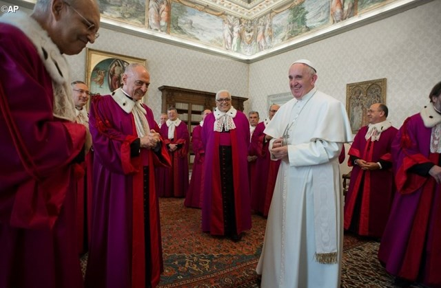 „A Rota Romana küldetése mindig Péter utódjának a segítő szolgálata volt, azért hogy a családdal elválaszthatatlanul összekapcsolt egyház továbbra is hirdesse a Teremtő és Megváltó Isten tervét a családi intézmény szent mivoltáról és szépségéről. A Rota Romana, mint a család törvényszéke értelmezése mellett, szeretném kiemelni annak egy másik sajátosságát – mondta a pápa – vagyis hogy az a szent kötelék igazságának a törvényszéke. E két szempont kölcsönösen kiegészíti egymást. Az egyház ugyanis Isten nélkülözhetetlen irgalmas szeretetét mutatja minden család, különösen is a bűn és az élet nehézségei miatt sérült családok felé, és ezzel együtt hirdeti a házasság elengedhetetlen igazságát. Ennek a szolgálata elsődlegesen a pápa és a püspökök feladata.