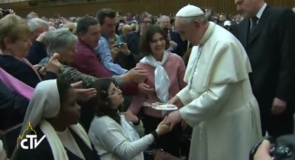 Jézus szeretete legyőzi a fogyatékosság akadályait – Ferenc pápa erről kívánt mindenekelőtt tanúságot tenni a siket és vak személyek előtt, akik hozzátartozóikkal, gondozóikkal töltötték meg a kihallgatási termet.