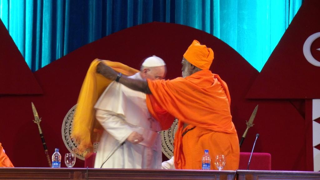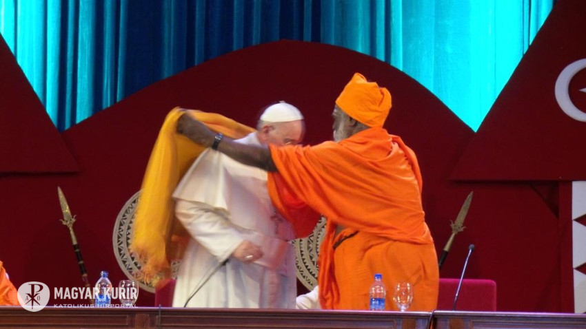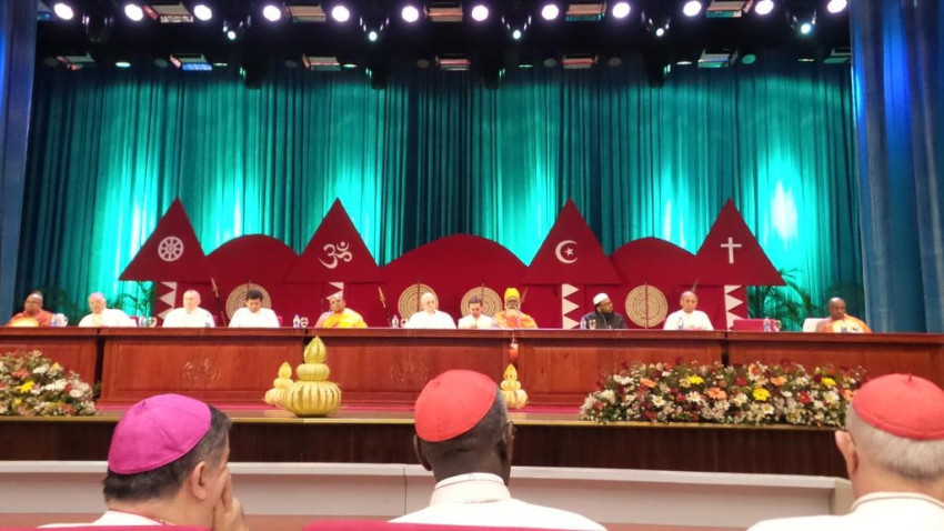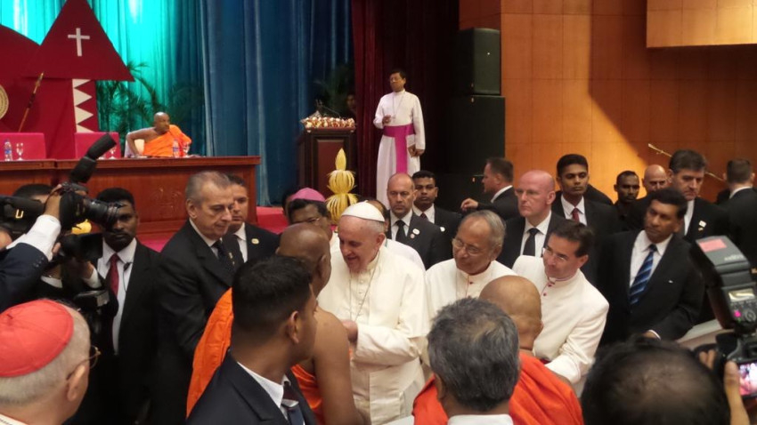 Ferenc pápa hálát adott azért, hogy részt vehet ezen a találkozón. Mint mondta, elődei, VI. Pál és II. János Pál pápák nyomdokain érkezett Srí Lankára, hogy kimutassa a katolikus egyház nagy szeretetét és gondoskodását a sziget iránt. Kegyelem számára, hogy meglátogathatja a helyi katolikus közösséget, és megerősítheti őket a Krisztusba vetett hitükben. Együtt imádkozhatnak, megoszthatják örömeiket és szenvedéseiket egymással. Kegyelem az is, hogy e nagy vallási hagyományok híveivel találkozhat, akik osztoznak a katolikusokkal a tudás, az igazság és a szentség iránti vágyban.