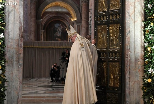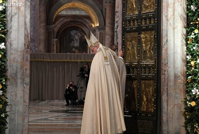 Ó, Atyánk, szent és mindenható a szeretetben, aki a te Fiadban, a Szűz Máriától született Jézusban kinyilvánítottad végtelen irgalmasságod arcát, nézz jóságosan az imádságban összegyűlt Egyházra a jubileumi szentév lezárásakor. Miközben hálásan elismerjük a tőled kapott kegyelmi ajándékokat, valamint a szóban és tettben való tanúságtételre hívó bátorításodat, továbbá irgalmas szereteted gyengédségét, bezárjuk a szent kaput. A megszentelő Lélek újítsa meg reménységünket a Megváltó Krisztusban, aki mindig nyitott Kapu azok számára, akik őszinte szívvel keresik őt, egyetlen Kapu, aki az eljövendő Országba vezet bennünket. Teremtő és szerető Atyánknak, a mi Királyunk és Urunk, Jézus Krisztus által, a vigasztaló Szentlélekben, minden tisztelet és dicsőség mindörökkön örökké! Ámen!