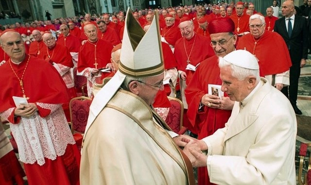 Kedves testvéreim, mindez nem tőlünk ered, hanem Istentől – figyelmeztetett Ferenc pápa. – Isten a szeretet, és mindezt véghezviszi, ha mi engedelmeskedünk Szentlelke működésének. Ilyennek kell tehát lennünk: inkardináltaknak és engedelmeseknek. Minél inkább sarokkövévé válunk a római egyháznak, annál engedelmesebbnek kell lennünk a Léleknek, hogy a szeretet alakot és értelmet adhasson mindannak, akik vagyunk, és amit teszünk. Inkardinálva lenni az egyházba, amely elöl jár a szeretetben, engedelmesen a Szentléleknek, amely elárasztja szívünket Isten szeretetével.