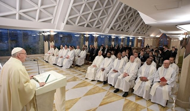 Jézus azt mondja, hogy nem szolgálhatunk két úrnak, Istennek és a pénznek, és amikor egy lelkipásztor pénzéhes, akkor botrányt kelt. Az emberek megbotránkoznak, ha látnak egy lelkipásztort, aki makacsul ragaszkodik a pénzhez. Minden lelkipásztor tegye fel magának a kérdést: milyen barátság fűz engem a pénzhez? Vagy az a lelkipásztor is megbotránkoztat, aki felfelé törtet, akit hiúsága arra késztet, hogy felfelé kapaszkodjon, ahelyett hogy szelíd és alázatos lenne – sorolta a példákat a pápa. – A szelídség és az alázat ugyanis elősegítik, hogy közel legyen a néphez. Az a lelkipásztor, aki uraságnak képzeli magát, és mindenkinek parancsolgat, gőgös, az sem szolgálja Isten népét.
