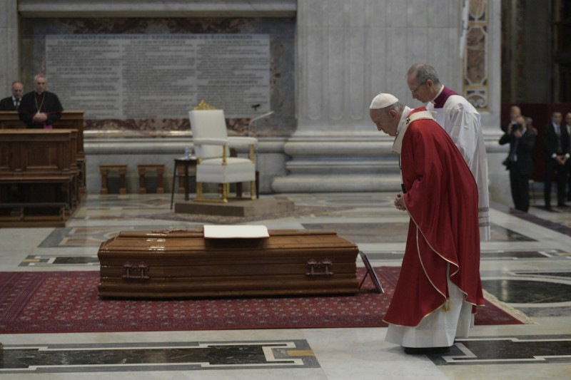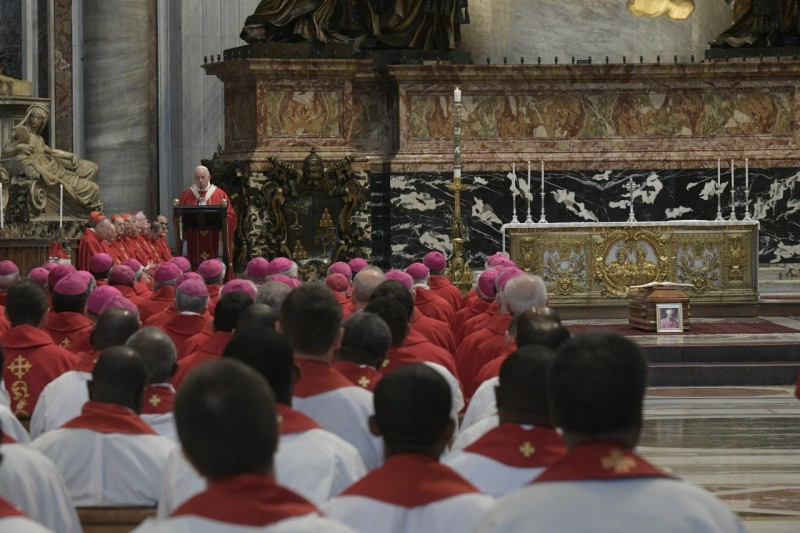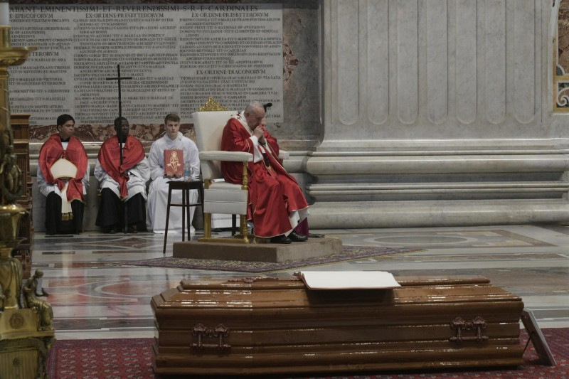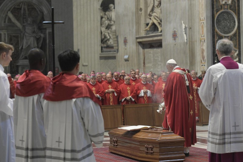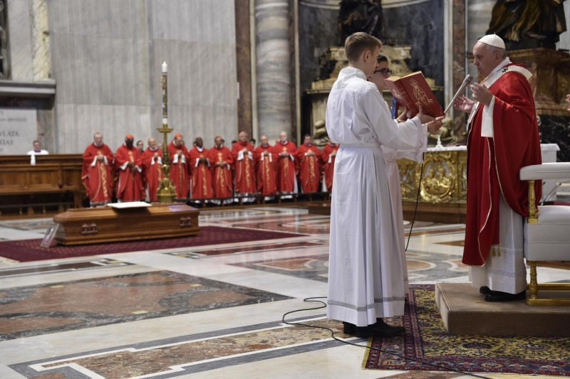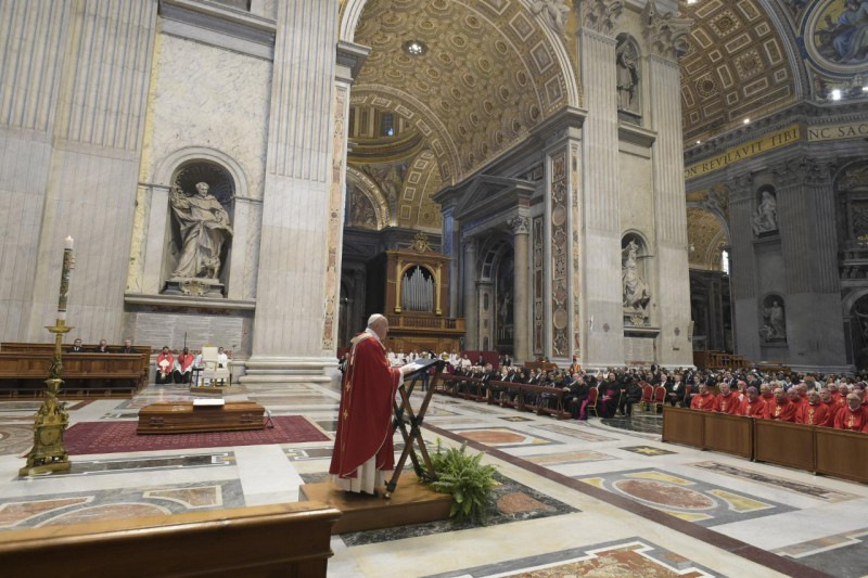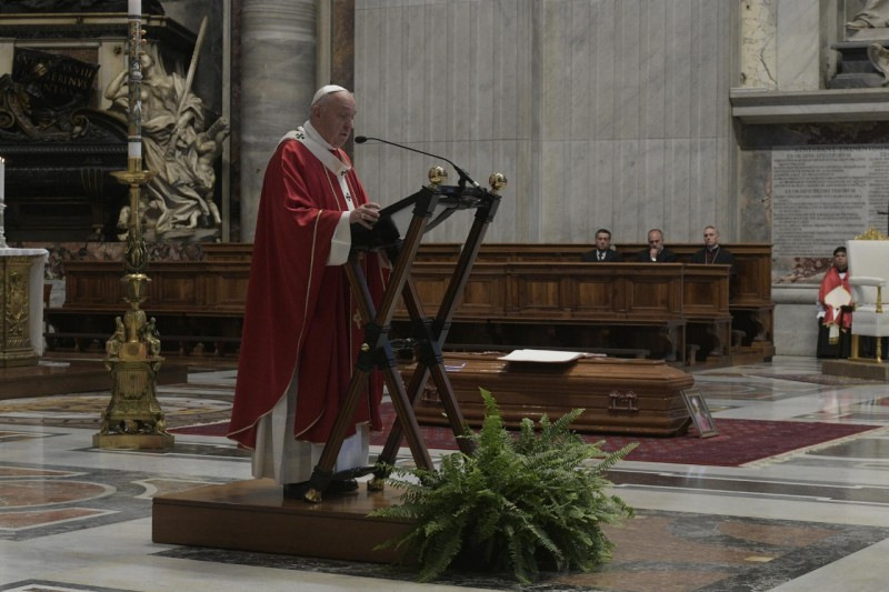 A gyászmise homíliájában Ferenc pápa a nyájáért szolgáló pásztor búcsújáról beszélt, ami végig jellemzi az életet, sok kis búcsú formájában, míg el nem érkezik a végső nagy búcsúzás.