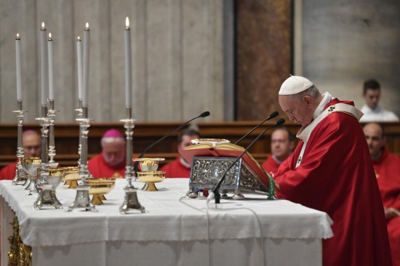 Ez a gyászmise a valedictióval, a végső búcsúvétellel ér véget ér, amikor elköszönünk az elhunyt testvértől. Mintha azt mondanánk neki, hogy most elengedünk téged az Istenhez, a kezébe ajánlunk téged – kezdte beszédét a pápa. – A Bölcsesség könyve tanítja, hogy „az igazak lelke az Úr kezében van”. Isten keze a legszebb, szeretettől sebzett kéz. Mi pedig ebbe a kézbe ajánljuk most testvérünk lelkét.