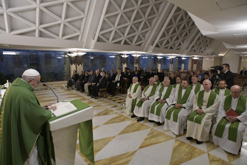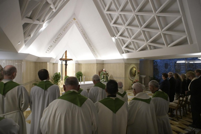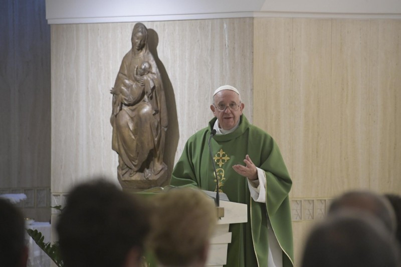 Az első olvasmányra hivatkozva, melyben Pál apostol a képmutatástól óv, Ferenc pápa megállapította, hogy a Jézust elutasító zsidóknak azt mondta egyszer az Úr: „Bizony mondom nektek, az utcalányok és vámosok megelőznek benneteket a mennyek országában.” Az Úr a legmegvetettebbeket szereti, azonban bennünket hív. Bezárkózásunkkal szemben eltávolodik és haragra lobban, amint az evangéliumban hallottuk. Végül a pápa a következő kérdéseket tette fel, mintegy lelkiismeret-vizsgálat gyanánt: „Hogyan megy az életem? Mit szeretek inkább? Elfogadni az Úr meghívását vagy bezárkózni apró dolgaimba? Kérjük az Úrtól a kegyelmet, hogy mindig menjünk el az ünnepére, mely ingyenes!” – zárta kedd reggeli homíliáját Ferenc pápa.