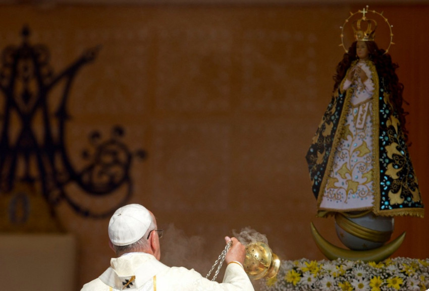 Mária hitt, a hit asszonya, az egyház Anyja. Élete tanúságtétel arról, hogy Isten nem ábrándít ki, nem hagyja el népét, még akkor sem, ha nehéz pillanatokban úgy tűnik is, hogy nincs velünk. Mária Fia első tanítványa, elkísérte nyilvános működése során, és reményt öntött a tanítványokba, támogatta őket. Tudjuk, hogy ma is itt, ezen a földön is velünk van, az Anya nem hagyja el gyermekeit. Velünk volt és marad kórházainkban, iskoláinkban, otthonainkban. Velünk volt és marad munkánkban és útjainkon, minden ház asztalánál. Diszkrét és csendes jelenlétével segít bennünket, hogy hazát, egy nemzetet alkossunk. Tudjuk, kegyképére, érmeire és a rózsafüzérre tekintve, hogy nem vagyunk egyedül.
