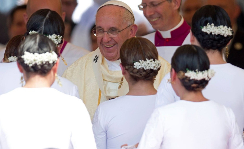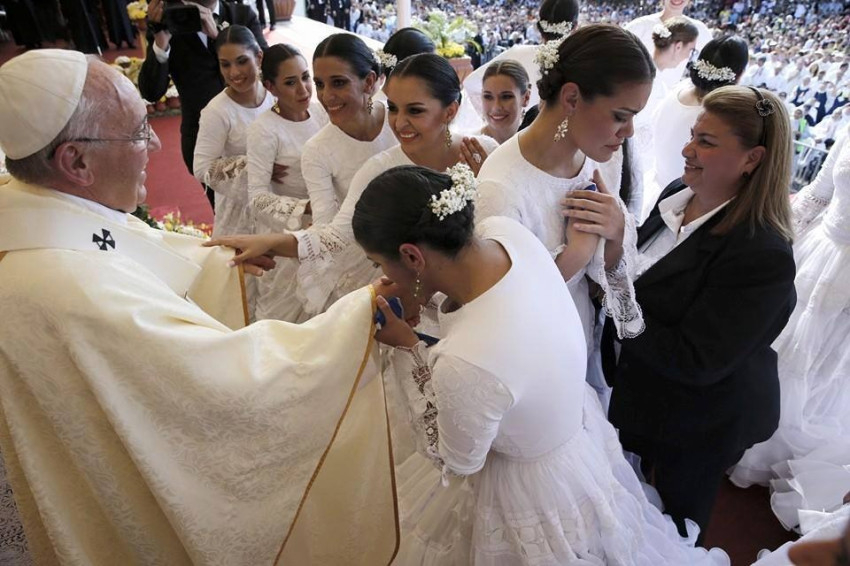 Mária megtanított bennünket, hogy minden helyzetben, számtalan nehézség közepette is az Úr velünk van, miként az angyali üzenet szerint ővele volt: „Az Úr van teveled! Ne félj, Mária!” És Mária mindig azt mondja, amit a kánai menyegzőn: „Tegyétek, amit mond!” Ferenc pápa szó szerint így folytatta: „Ti tudjátok, megtapasztaltátok, amit most megosztunk. Ti valamennyien, minden paraguayi elevenen emlékezik arra a népre, amely megtestesítette az evangéliumnak ezeket a szavait. És különösen is utalni akarok rátok, asszonyokra és paraguayi anyákra, akik nagy bátorsággal és önmegtagadással talpra tudtátok állítani a háború által lerombolt, mélyre süllyedt országot. Nálatok van az emlékezet, a genetikai öröksége azoknak, akik újraépítették az életet, a hitet, népetek méltóságát.