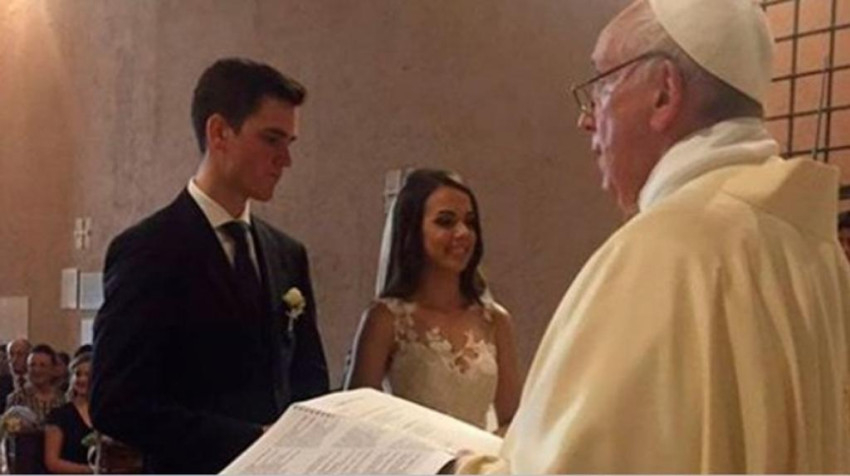 Nem ez volt az első eset, hogy Ferenc pápa házasságkötésen vett részt a Vatikánban: gondoljunk vissza a húsz jegyespár esküvőjére a Szent Péter-bazilikában 2014 szeptemberében vagy a siket pár házasságkötésére a Szent Márta-házban 2016 júliusában; és ne feledkezzünk el a chilei hostess és steward híres „repülős házasságkötéséről” sem, melyet a levegőben vezetett a pápa chilei apostoli látogatása során ez év januárjában.