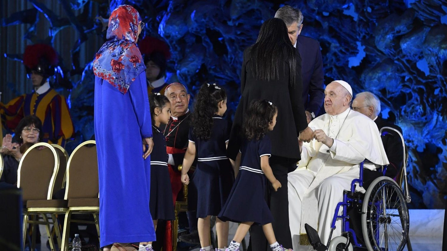 Sofia ötéves, Lilia és Miral négy. Másfél éve mindhárman árvák, mert szeretett édesapjukat, Luca Attanasiót, Olaszországnak a Kongói Demokratikus Köztársaságba delegált nagykövetét meggyilkolták, amikor az afrikai országban az ENSZ egyik gyermekélelmezési központjába utazott. Özvegye, Zakia Seddiki elmondta Ferenc pápának, hogy ma is maga mellett érzi férjét mindennap, érzi a közelségét „megsebzett családjában”. Zakia muszlim, de a családban soha nem jelentettek problémát a vallási különbségek: „sőt, gazdagabbá tett minket, a családunkat az igaz szeretetre, tiszteletre, szolidaritásra és a kultúráink közti párbeszédre építettük”. Megtanulták, milyen fontos meghallgatni egymást, és nem ítélkezni, hiszen mindkettőjük szent könyvében azt kéri Isten, hogy szeressék embertársaikat, ne tegyenek rosszat senkivel és tiszteljék a másikat. Mindkét könyv ott volt a polcukon, bárhol is éltek, gyermekeikkel megünnepelték a karácsonyt és a ramadánt is, amely ünnepek emlékeztetnek arra a sok gyermekre is, akiknek nem jut elég élelem és víz. Elmondta, mennyire hiányzik a férje, aki mindig megnevetette a lányokat, mesélt nekik, de biztos benne, hogy a gyerekeik éppen olyan erősek és mosolygósak lesznek, mint édesapjuk volt, és hiába igazságtalan az élet, nem engedik át magukat a vigasztalanságnak. Azt kívánta minden családnak, legyenek mindig bizonyosak abban, Isten soha nem hagy minket egyedül.