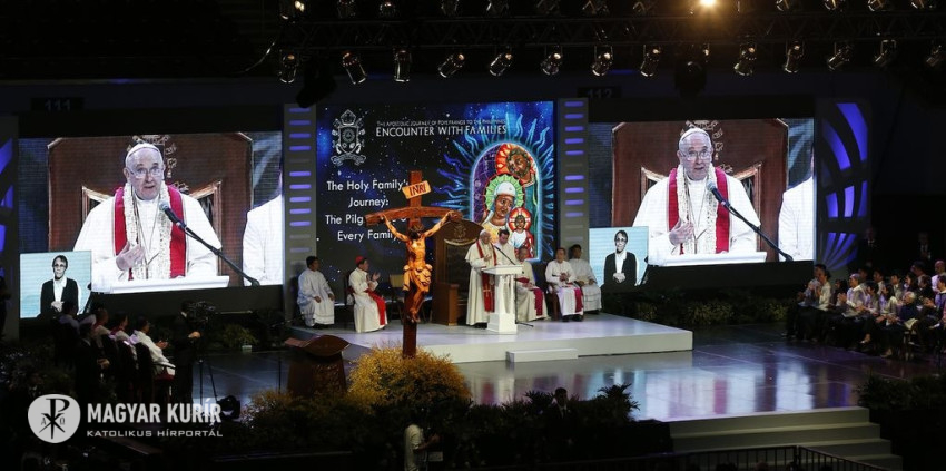 Végül a pápa kérte a családokat, hogy ne feledkezzenek meg az alvó Jézusról és az alvó Józsefről. Gyakran imádkozzanak és vigyék el imáik gyümölcseit a világba, hogy mindenki megismerhesse Jézus Krisztust és irgalmas szeretetét. Kérlek, aludjatok értem is és imádkozzatok is értem, mert igazán szükségem van rá, és mindig függök tőle! Nagyon köszönöm – zárta beszédét a pápa a manilai családtalálkozón.