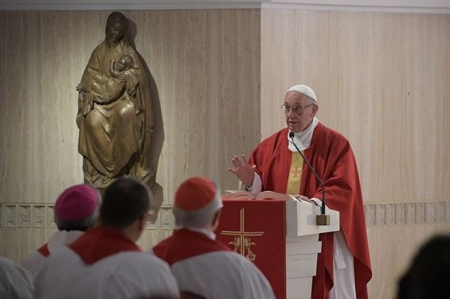 Ferenc pápa arra buzdított, hogy ismerjük el bűnös mivoltunkat, nem elviekben, hanem konkrét bűnökkel kapcsolatban: sok bűnünk van mindannyiunknak. Hagyjuk, hogy Jézus vezessen minket szeretetteljes, irgalmas tekintetével. Ami pedig a botrányokat illeti, leszögezte: „Nagyon sok van a mai Egyházban is. Azt mondják: »Ezt nem lehet, ez teljesen egyértelmű, nem, nem… Azok bűnösök, el kell távolítani őket.« Sok szentet is üldöztek, vagy gyanakodtak rájuk. Gondoljunk Szent Johannára, akit máglyára küldtek, mert azt hitték, hogy boszorkány, és elítélték. Egy szentet! Gondoljatok Szent Terézre, akit eretnekséggel gyanúsítottak, gondoljatok Boldog Rosminira (Antonio Rosmini olasz pap, filozófus, egyházi író – a szerk.). Irgalmasságot várok, és nem áldozatot! És az ajtó, hogy találkozzunk Jézussal, akkor nyílik meg, ha elismerjük, milyenek vagyunk valójában. Bűnösök. Ő pedig jön, és találkozunk. Nagyon szép találkozni Jézussal!” – zárta csütörtök reggeli homíliáját Ferenc pápa.