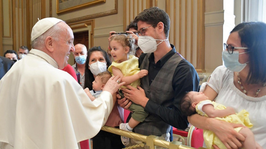 Ez reményt és vigaszt ad a megfáradás időszakán átmenő pároknak, akik őszinte egyszerűségetekben segítő kézre találnak. Jó lenne, ha azt gondolnák: „Nézd csak a diakónusunkat! Örömmel van együtt a szegényekkel, de a plébánossal is, sőt a gyerekeivel és a feleségével is!” Sőt, az anyósával is, ez nagyon fontos!