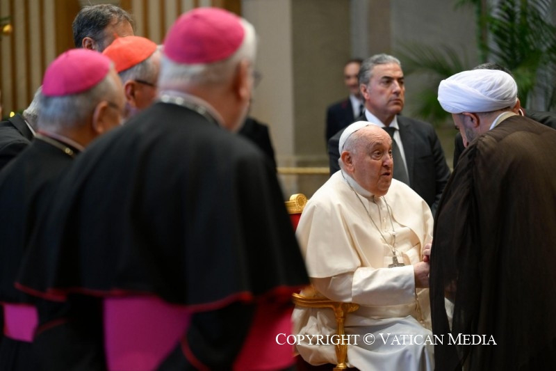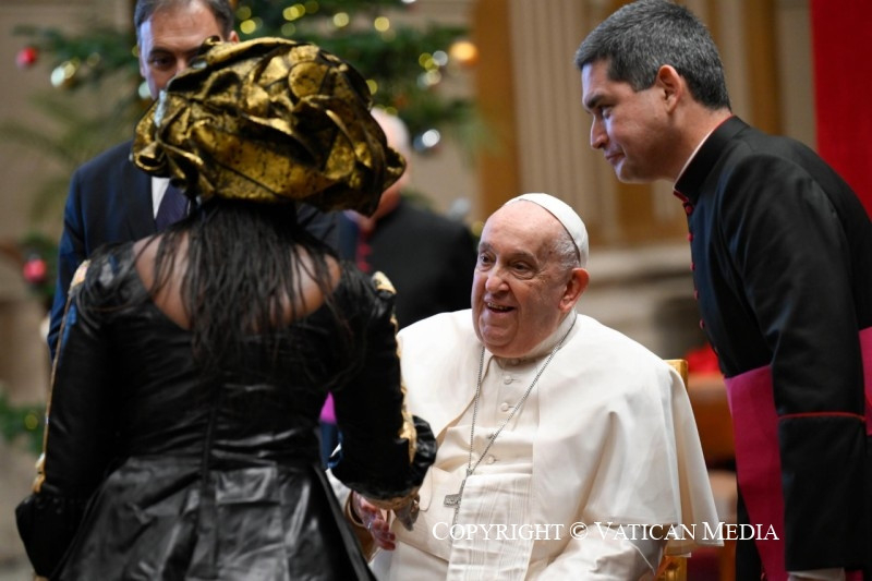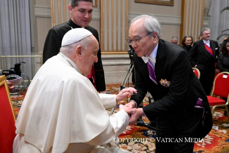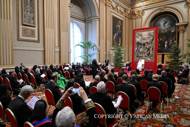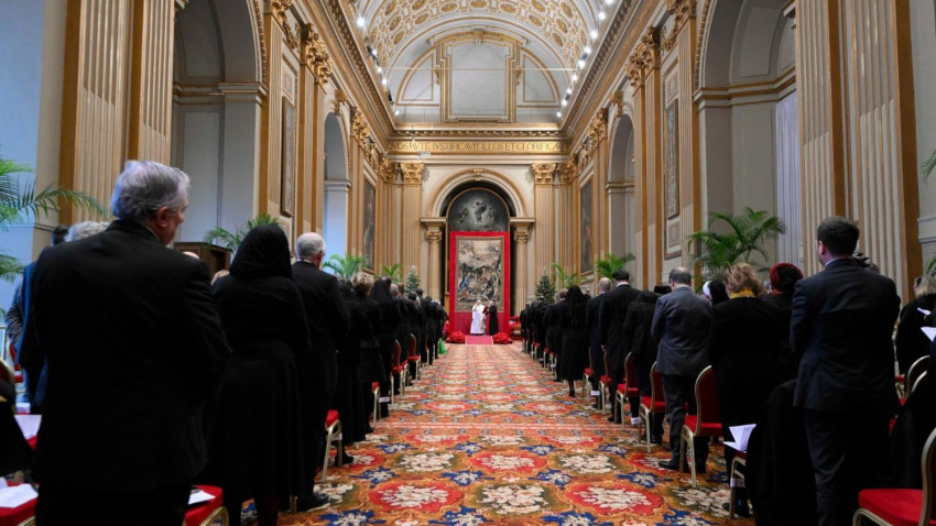 A Szentszékhez akkreditált 184 nagykövetet és a diplomatákat az Áldások termében fogadta a pápa, aki megfázása miatt Filippo Ciampanelli atyát, a Keleti Egyházak Dikasztériumának altitkárát kérte meg beszéde felolvasására. Magyar részről jelen volt az audiencián Habsburg-Lotharingiai Eduárd szentszéki nagykövet, Tóth Krisztina vatikáni levéltári delegátus, Törő András atya, a szentszéki nagykövetség egyházi tanácsosa és a Pápai Magyar Intézet rektora, valamint Buda Zolta, a szentszéki nagykövetség diplomatája.