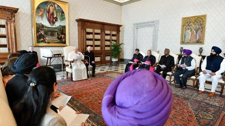 A pápa méltatta az otthonuktól távol, különböző országokban végzett szolgálatukat, melyekkel a szikhek a rászorulókat segítik. Ez a vállalásuk a hitből fakad, mellyel hozzájárulnak ahhoz a társadalomhoz, melybe igyekeznek beilleszkedni, egyben pedig hűek maradni sajátos identitásukhoz. Emellett hidakat építenek az emberek között, a szegények, a rászorulók és a szenvedők szolgálata révén saját életük is áldásos lesz és gazdagodik.