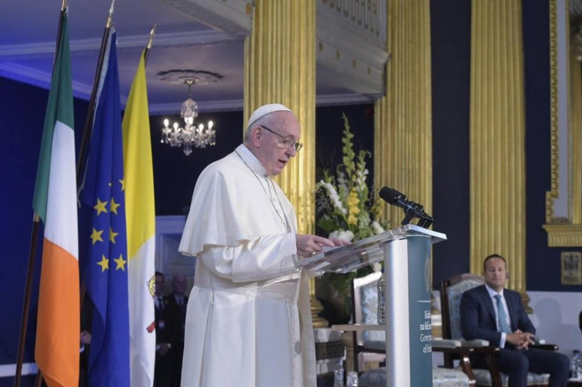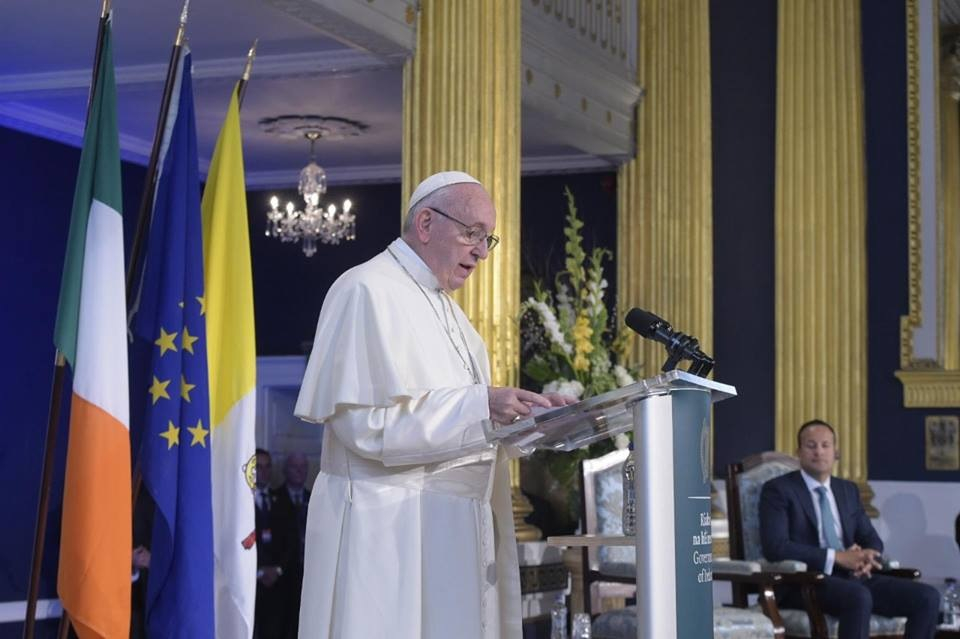 A pápa felidézte az ország közelmúltjának történetét: Írországban hosszú konfliktus választotta el egyetlen család testvéreit egymástól. Húsz évvel ezelőtt a nemzetközi közösség figyelemmel követte Észak-Írország eseményeit, amelyek a nagypénteki egyezmény aláírásához vezettek. Az ír kormány, Észak-Írország politikai, vallási és polgári vezetőivel és a brit kormánnyal egységben, a világ vezetőinek támogatásával megteremtette a mindkét oldalon kimondhatatlan szenvedéseket okozott konfliktus békés rendezésének kereteit. A pápa reményének adott hangot, hogy a két évtizede tartó békefolyamat tovább folytatódik és leküzd minden, még fennálló akadályt.
