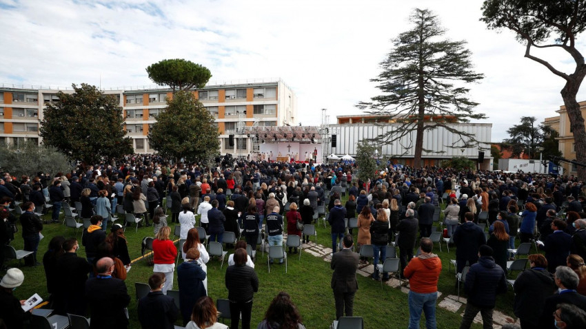 A harmadik szó a megerősítés. Az első az emlékezés, a második a szenvedély, a harmadik a megerősítés. Olyan erőre utal, amely nem tőlünk származik, hanem attól, akik velünk van: tőle jön az erő. Jézus, az Isten velünk adja nekünk ezt az erőt, az ő szíve ad bátorságot a viszontagságok között. Annyi bizonytalanság ijeszt meg bennünket: most, a világjárvány idején felfedeztük, hogy kisebbek, törékenyebbek vagyunk. A sok csodálatos fejlődés ellenére, ez az orvostudomány területén is megmutatkozik: megannyi ritka és ismeretlen betegség! Amikor a kihallgatásokon emberekkel – különösen kisgyermekekkel – találkozom, és megkérdezem: „beteg?”, [így válaszolnak:] „ritka betegség.” Nagyon sokan szenvednek ilyenekben manapság! Milyen nehéz lépést tartani a patológiákkal, a kezelési lehetőségekkel, az egészségügyi ellátással, hogy az valóban olyan legyen, amilyennek lennie kellene, mindenki számára. Hajlamosak vagyunk elcsüggedni. Ezért van szükségünk megerősítésre – ez a harmadik szó.