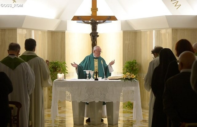 Az evangélium özvegyei Jézus szép tanítását adják nekünk az egyházról. A naimi özvegy például, aki fia koporsója mellett sír egyedül. Az emberek elkísérték, de szívében egyedül volt! Az egyház özvegy, amely sír, amikor gyermekei meghalnak Jézus élete számára. Egy másik özvegy, aki gyermekeit védelmezi, elmegy az igazságtalan bíróhoz, lehetetlenné teszi életét, mert mindennap kopogtat ajtaján, mondván: tégy igazságot! Végül igazságot tesz. Az egyház özvegy, aki imádkozik és közbenjár gyermekeiért. Az egyház szíve azonban mindig Jegyesével, Jézussal van. Ott fenn. Lelkünk is – a sivatagi atyák szerint – nagyon hasonlít az egyházhoz. Amikor a lelkünk, életünk közelebb áll Jézushoz, eltávolodik a világi dolgoktól, amelyekre nincs szüksége, amelyek nem segítenek és amelyek eltávolítanak Jézustól. Ilyen az egyházunk, amely keresi és várja Jegyesét, várja a találkozást, sír és harcol gyermekeiért, mindent odaad, mert csak Jegyese érdekli.