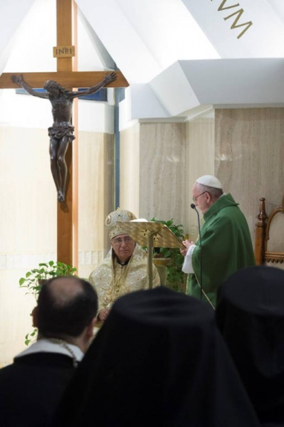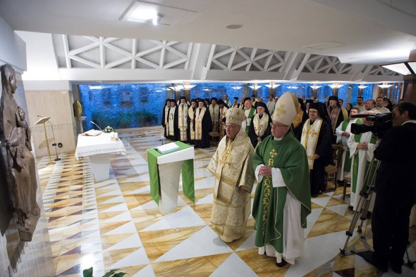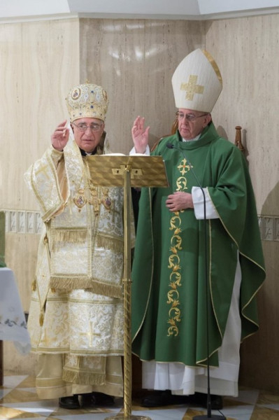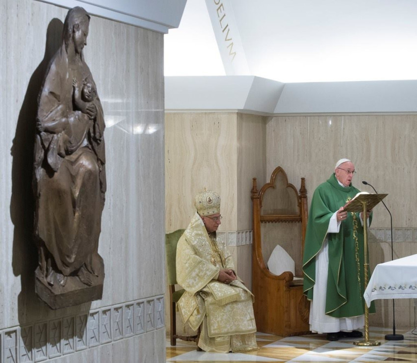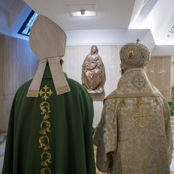 A hétfői audienciát követően a kedd reggeli szentmisén is visszatért Ferenc pápa ennek az egységnek a jelentőségére. „Ez a szentmise testvérünkkel, József pátriárkával az apostoli kommunióról tanúskodik: ő egy ősi egyház atyja, aki eljön, hogy megölelje Pétert, ami azt jelenti, hogy szeretetközösségben van Péterrel.