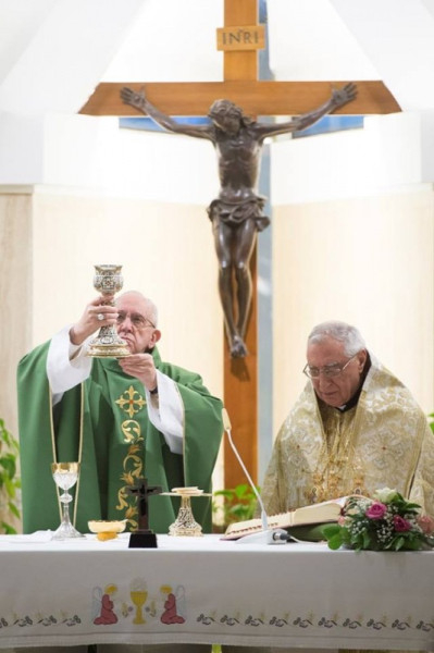 Ez a mai szertartás jelentése: egy egyházatya megöleli Pétert. Egy gazdag egyház, amelynek a katolikus teológián belül megvan a maga teológiája, csodálatos liturgiája, és a népe, melynek nagy részét ebben a pillanatban keresztre feszítik, mint Jézust. Ezt a szentmisét ezért a népért ajánljuk fel, amely szenved, a Közel-Kelet üldözött keresztényeiért, akik életüket adják, javaikat, tulajdonukat, mert elüldözik őket. És felajánljuk ezt a misét József testvérünkért is” – mondta a február 13-án reggel bemutatott szentmisén a Szentatya.