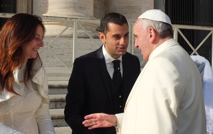 Ferenc pápa nem az első a római egyházfők között, aki jelen van a házasság szentségének kiszolgáltatásánál, az esemény mindenesetre rendkívül ritka az Egyház életében. Csak Szent II. János Pál mutatott be néhány alkalommal nyilvános nászmisét, például a Családok Világtalálkozóján, amelyet 1994 októberében tartottak a Vatikánban.