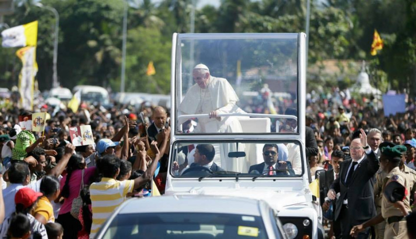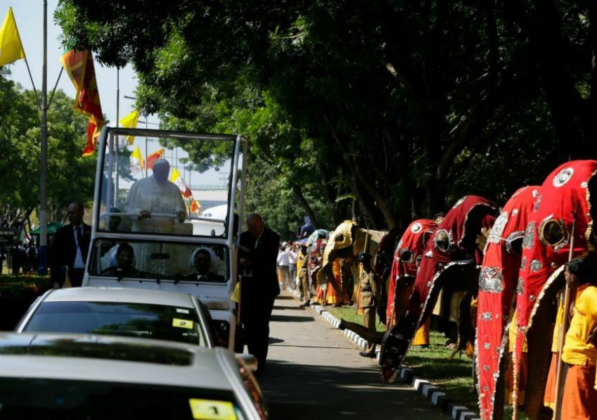 Magyar idő szerint hajnali negyed ötkor érkezett meg Colombo Bandaranaike nemzetközi repülőterére Ferenc pápa. Köszöntőjében arra szólította a társadalom tagjait, fogjanak össze, mint egy nagy család. „A különbözőség nem fenyegetés, hanem a gazdagodás forrása” – hangsúlyozta.