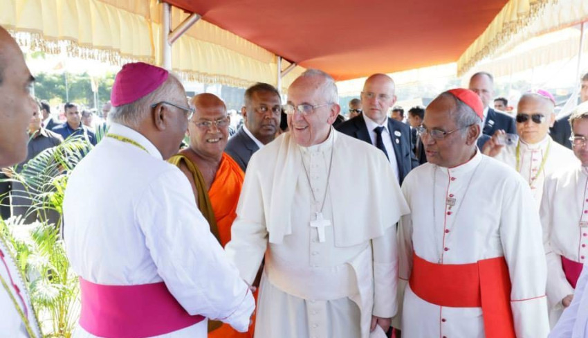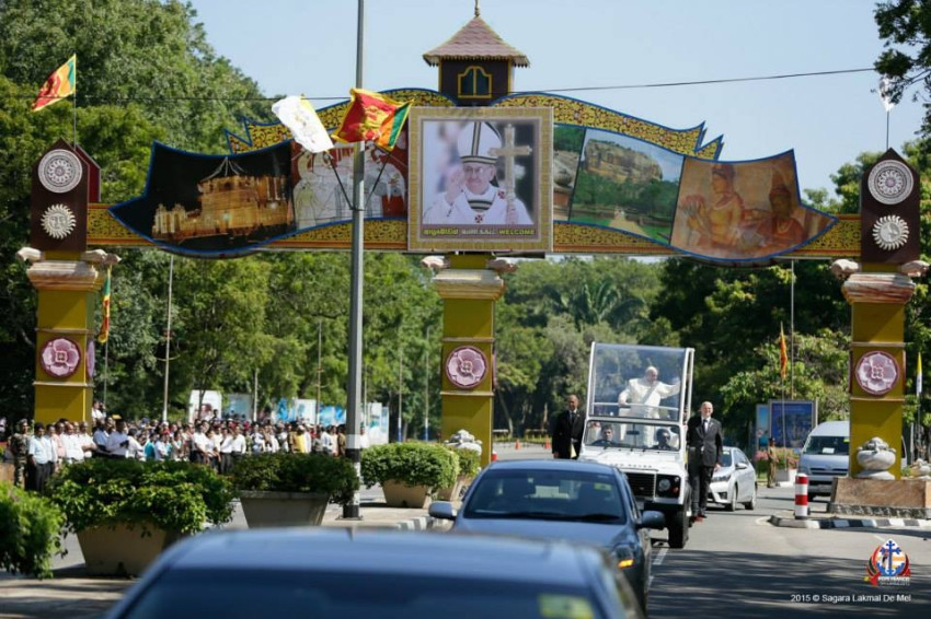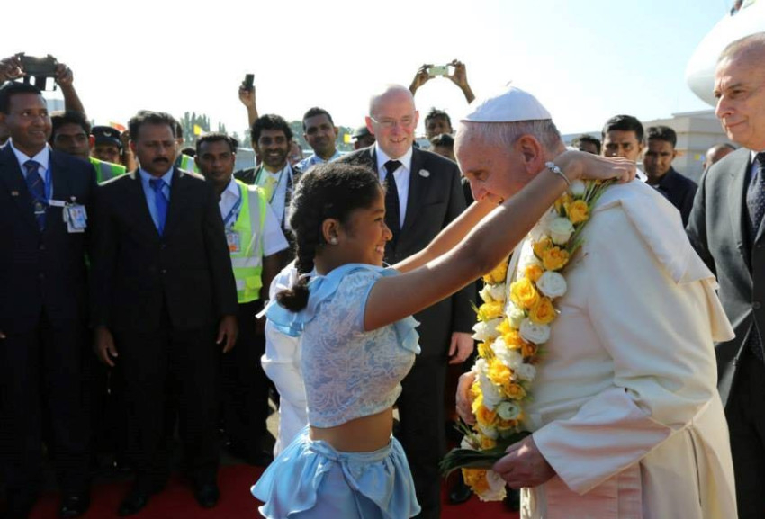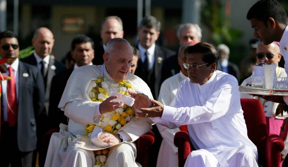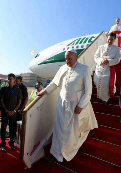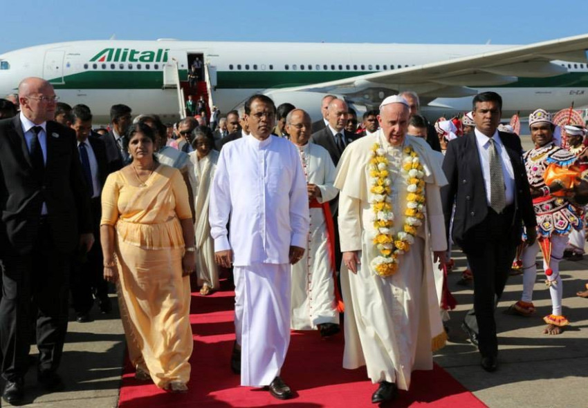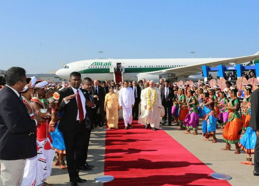 A colombói repülőtéren az új elnök, Maithripala Sirisena, valamint a város érseke, Albert Malcolm Ranjith bíboros fogadták Ferenc pápát.