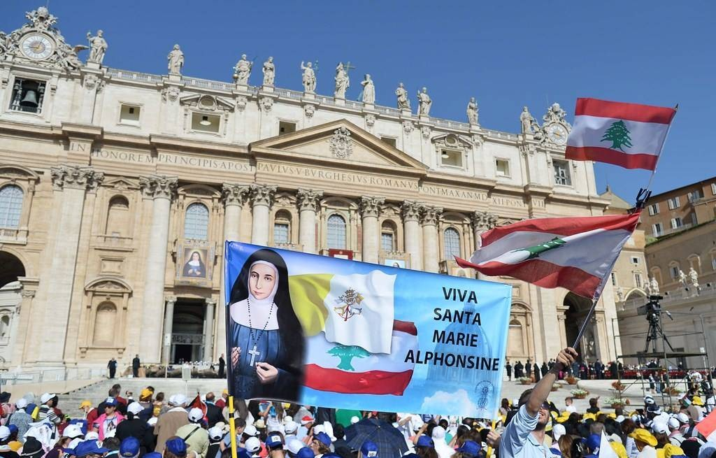 E szertartás végén szeretnélek mindnyájatokat köszönteni, akik eljöttetek, hogy tiszteleteteket lerójátok az új szentek előtt. Különösképpen köszöntöm Palesztina, Franciaország, Olaszország, Izrael és Jordánia hivatalos küldöttségeit. Szeretettel köszöntöm a bíborosokat, a püspököket, a papokat, valamint e négy szent lelki leányait. Közbenjárásukra adjon az Úr új misszionáriusi lendületet azoknak az országoknak, ahonnan ők származnak. Az irgalmasságról, a szeretetről és a kiengesztelődésről adott példájukból ihletet merítve az ottani keresztények reménnyel tekintsenek a jövőbe és folytassák a szolidaritás és a testvéri együttélés útját.
