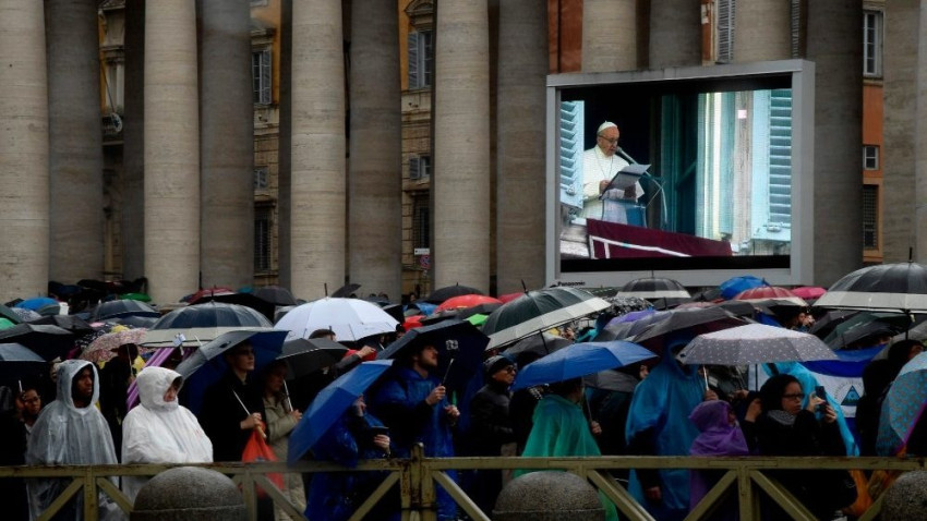 Köszöntöm azokat, akik részt vesznek a termékenységről szóló konferencián, amelyet az Università Cattolica del Sacro Cuore [Szent Szív Katolikus Egyetem] szervezett Szent VI. Pál Humanae vitae kezdetű enciklikájának ötvenedik évfordulóján. Köszöntöm továbbá a „Roma Tre” Egyetem jogi hallgatóit, a pozzuoli, bacoli és bellizzi híveket, valamint a palermói Istituto Ranchibile tagjait. Szeretném kifejezni elismerésemet, amiért bátrak voltatok, és ekkora esőben is eljöttetek. Bátrak vagytok! Derék emberek!