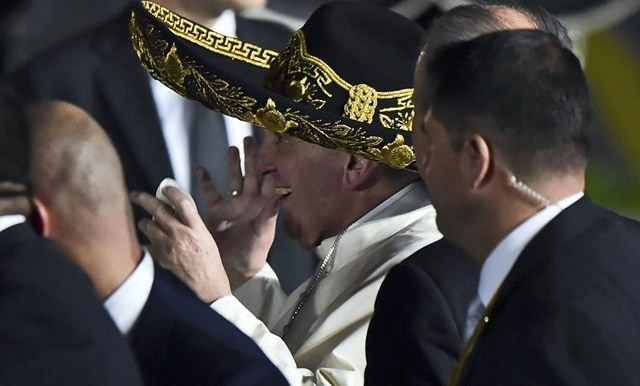 Összesen most hetedik alkalommal köszöntheti a katolikus mexikói nép Róma püspökét a saját földjén. A pápa a 11 500 kilométeres utat tizenöt óra alatt tette meg egy megszakítással és estére érkezett meg Mexikóba. A kései érkezés miatt a hivatalos állami ceremóniákat másnapra helyezték az eredeti terv szerint is, de Mexikó népe éppen ezt a lehetőséget használta ki és olyan fogadtatást rendezett, amit római pápa repülőtéren eddig még nem látott, érkezése valóságos népünnepéllyé vált. Amíg a repülő lassan begördült a Benito Juárez repülőtér elnöki hangárja elé, egy zenekar rázendített a Cielito lindo néven ismert mexikói énekre, miközben népviseletbe öltözött táncosok táncoltak. Mintegy ötezer tarka ruhás mexikói fogadta a pápát a 120 milliós lakosság nevében, zászlóikat és kendőiket lengetve. Amikor Ferenc pápa megjelent a repülőgép ajtajában, az egybegyűltek a pápa nevét skandálták, illetve saját magukat is éltették, hogy ők „a pápa fiataljai”.
