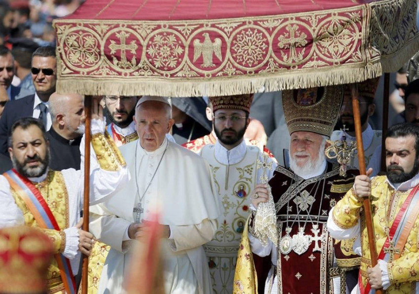 Dicsőítjük a Legszentebb Szentháromságot, az Atyát, a Fiút és a Szentlelket, hogy lehetővé tették számunkra, hogy találkozzunk Ararát bibliai földjén, amely arra emlékeztet, hogy Isten mindig védelmezőnk és üdvözítőnk kíván lenni. Lelkünkben örömmel emlékezünk rá, hogy 2001-ben, 1700. évfordulóján annak, hogy a kereszténységet Örményország vallásának hirdették ki, Szent II. János Pál meglátogatta Örményországot, és tanúja volt az Örmény Apostoli Egyház és a Katolikus Egyház közötti szívélyes és testvéri kapcsolatok új fejezetének. Hálásak vagyunk azért a kegyelemért, hogy együtt lehettünk a Szent Péter-bazilikában bemutatott ünnepélyes liturgián Rómában 2015. április 12-én, ahol elköteleztük magunkat, hogy ellenállunk a diszkrimináció és az erőszak minden formájának, és megemlékeztünk annak az áldozatairól, amiről Őszentsége II. János Pál és Őszentsége II. Garegin közös nyilatkozata így szólt: „másfél millió örmény keresztény kiirtása, amire általában úgy utalnak, mint a huszadik század első népirtása”. (2001. szeptember 27).