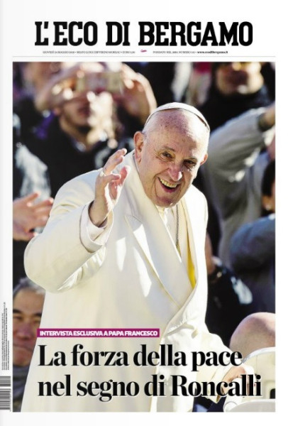 – Már megírtam egy négy évvel ezelőtti, április 25-én kelt, az Ön újságjára bízott üzenetben – ennek az újságnak Angelo Giuseppe Roncalli megbecsült munkatársa volt –, hogy tudom, mennyire szeretik a bergamóiak János pápát, és mennyire szerette ő szülőföldjét. Azt is tudom, hogy pápává választása óta Bergamónak és Sotto il Monténak a neve mennyire ismerőssé vált az emberek számára szerte a világon. Sok családnak, még ma is, és nem csak Olaszországban, hanem az egész világon, van képe a „jó pápáról”, ahogyan általában nevezik őt. Ezért válaszoltam igennel arra a kérésre, hogy visszatérhessen, természetesen időlegesen, gyökereinek földjére, oda, ahol gyermek- és kamaszkorát élte a családjával, mielőtt a szeminárium vált volna a családjává hivatása megszületése után. Azt hiszem, igazi ajándék és jó alkalom lehet ez, hogy a hívő élet új lendületet vegyen… Szeretnék osztozni a bergamóiak örömében, de a zarándokokéban is, akik elmennek János pápa szülővárosába, mely már égre nyitott szentéllyé vált. Ebben az örömben azonban kivált az idősekkel, a szegényekkel, a betegekkel szeretnék osztozni, akik sosem jöhettek el Rómába, hogy imádkozzanak a Szent Péter-bazilikában található koporsójánál. Azt kívánom – és kérem, értsék jól –, hogy az emberek ne csak látni akarják az ő testét az üvegkoporsóban, hanem főleg érezni akarják azt, hogy ő nézi őket; érezzék magukat megszólítva általa: ő ugyanis arra hív mindenkit, hogy azt nézzük, ami valóban számít, vagyis – amint életének utolsó időszakában mondta – a Megfeszítettet, akit ágyával szemben helyezett el, akihez beszélt, és akit hallgatott, akire nézett, és akitől nézve érezte magát. Én is nézem a feszületet az ágyamból, ahogyan Buenos Airesben is tettem: ott nagyszüleim feszülete függött előttem…