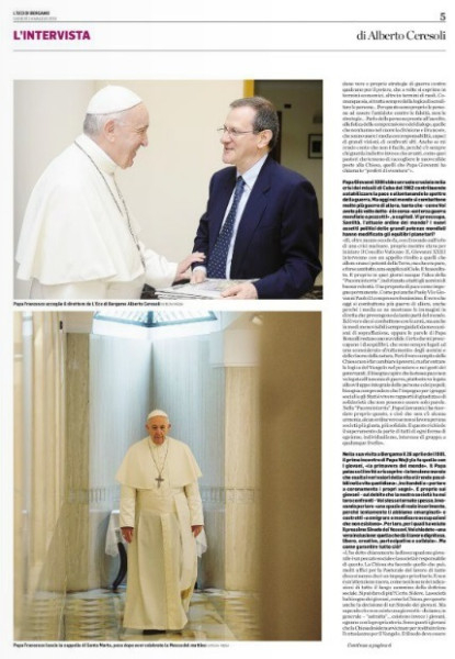 – Több mint fél évszázaddal ezelőtt a L’Eco di Bergamo alapításának száznyolcvanadik évfordulójára küldött gratulációjában XXIII. János pápa a katolikus sajtónak az igazság védelmezésében, az igazi emberi és szociális értékek előmozdításában játszott szerepét hangsúlyozta. Ön is, amikor az újságírókhoz fordult, többször is utalt hasonló feladatokra. Manapság azonban az, ha valaki tisztességes és tiszteletben tartja az igazságot s az emberi méltóságot, úgy tűnik, csak kevesek várakozásainak és érdekeinek felel meg. Mi az oka a társadalom ilyetén eldurvulásának? Milyen út vezethetne a méltányosság és igazságosság visszaállításához?