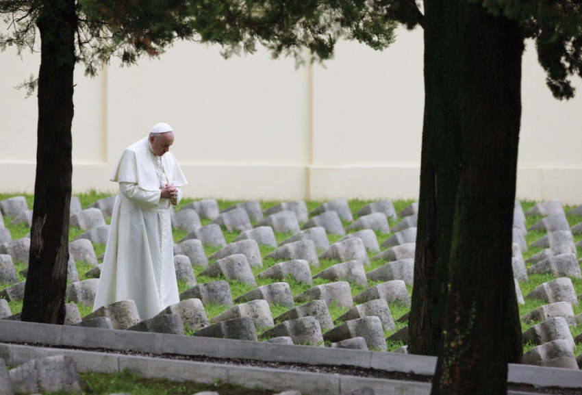 Ferenc pápa 2014. szeptember 13-án, az észak-olaszországi Redipuglia katonai emlékhelyen szentmisét mutatott be az első világháború kitörésének centenáriuma alkalmából és lerótta tiszteletét a harcokban elesett katonák előtt.