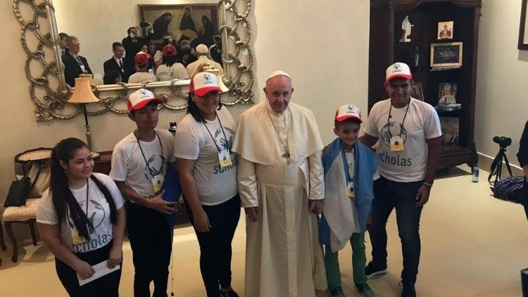 A legutóbbi szinódus egyik gyümölcse az a gazdagság volt, hogy képesek voltunk találkozni és mindenekelőtt meghallgatni egymást. Az a gazdagság, hogy a nemzedékek meghallgatták egymást, osztoztak egymás tapasztalatában, az a nagy érték, hogy felismertük, szükségünk van egymásra, és törekednünk kell olyan csatornákat és tereket teremteni, amelyeken keresztül részt vehettek a holnap megálmodásában és építésében a mából kiindulva. De nem elkülönülve, hanem együtt, közös teret teremtve. Olyan teret, amelyet nem ajándékba kapunk, és nem lottón nyerünk, hanem olyan teret, amelyért nektek is harcolnotok kell. Nektek, fiataloknak, harcolnotok kell a teretekért ma, mert az élet ma zajlik. Senki sem ígérhet neked holnapot. Az életed ma zajlik, kockáztatnod ma kell, a tered ma nyílik. Hogyan válaszoltok erre?