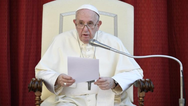 A szeretetről és a közjóról tartott katekézise után Ferenc pápa különböző nyelveken köszöntötte a Damázusz-udvarban jelen lévő zarándokokat.