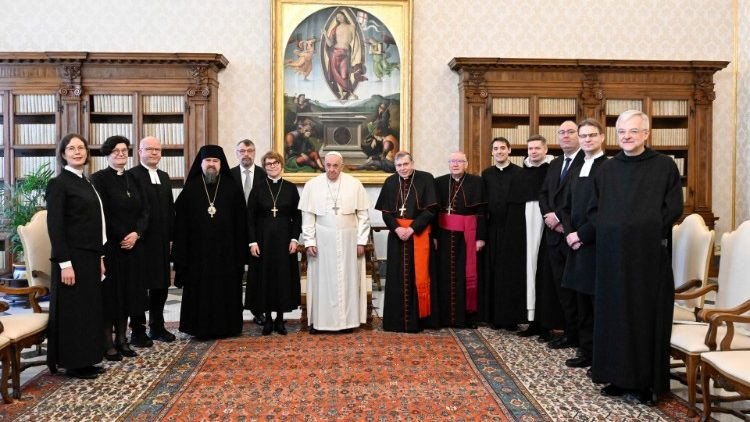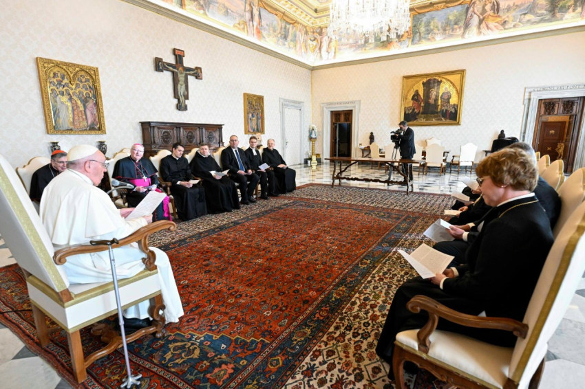 A vatikáni audiencia elején Ferenc pápa köszönetet mondott a finn keresztény vezetőknek részvétnyilvánításukért XVI. Benedek pápa közelmúltbeli halála miatt.