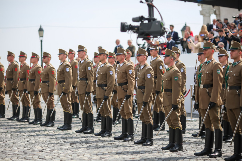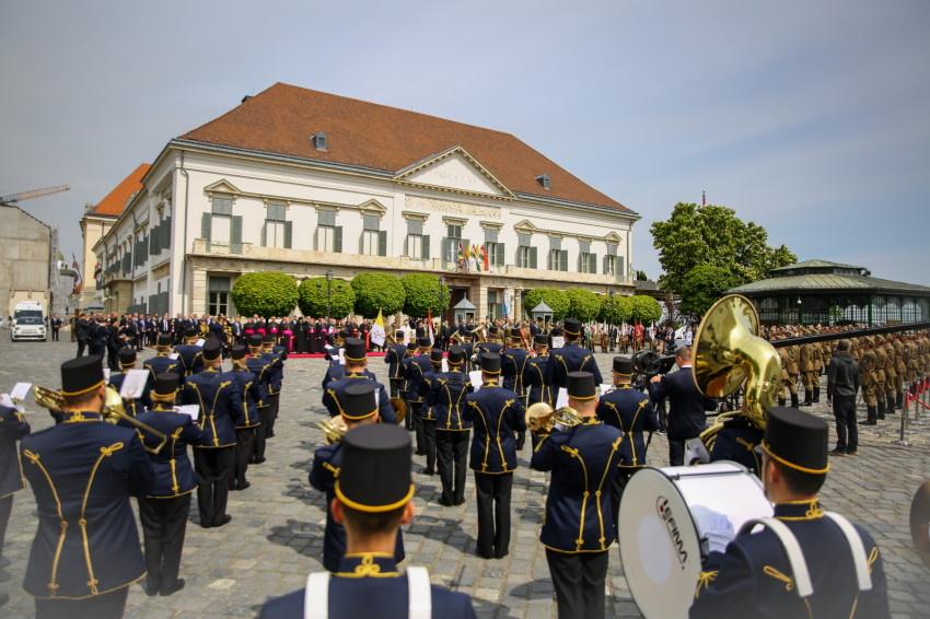 A magyar delegáció tagja volt Orbán Viktor miniszterelnök; Kövér László, az Országgyűlés elnöke; Sulyok Tamás, az Alkotmánybíróság elnöke; Varga Zs. András, a Kúria elnöke; Polt Péter legfőbb ügyész; Semjén Zsolt miniszterelnök-helyettes; Szijjártó Péter külgazdasági és külügyminiszter; Csák János kulturális és innovációs miniszter; Navracsics Tibor területfejlesztési miniszter és Habsburg-Lotharingiai Eduárd, Magyarország vatikáni nagykövete.