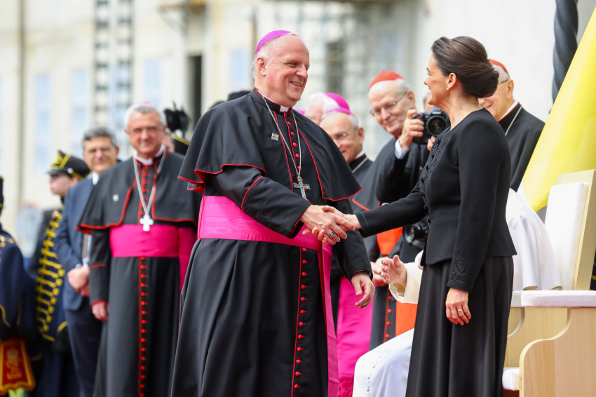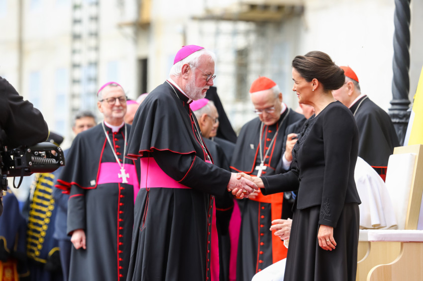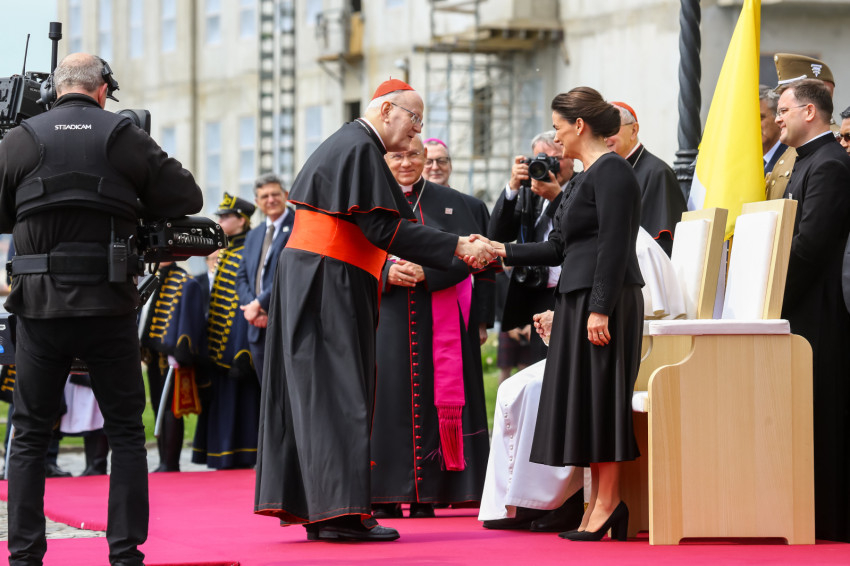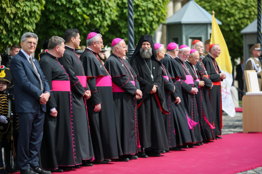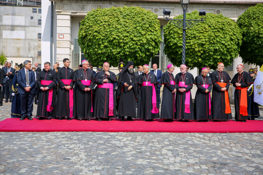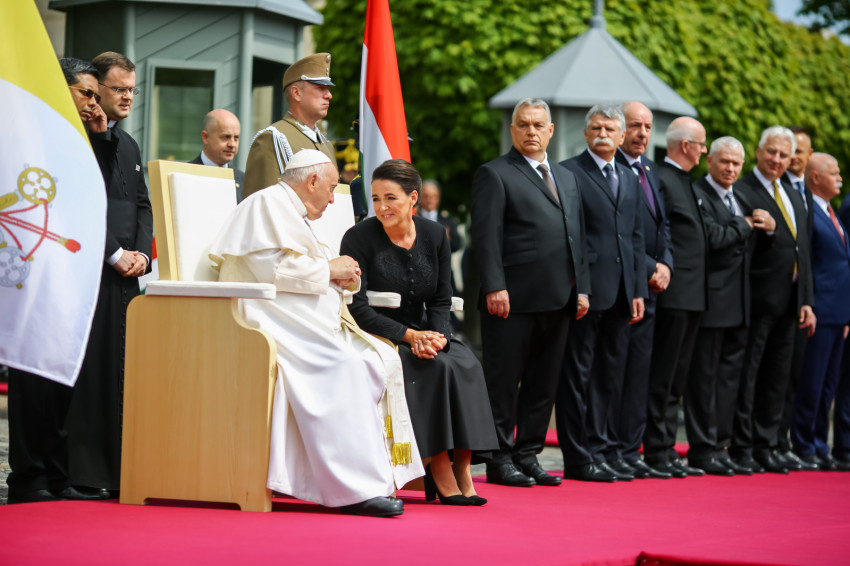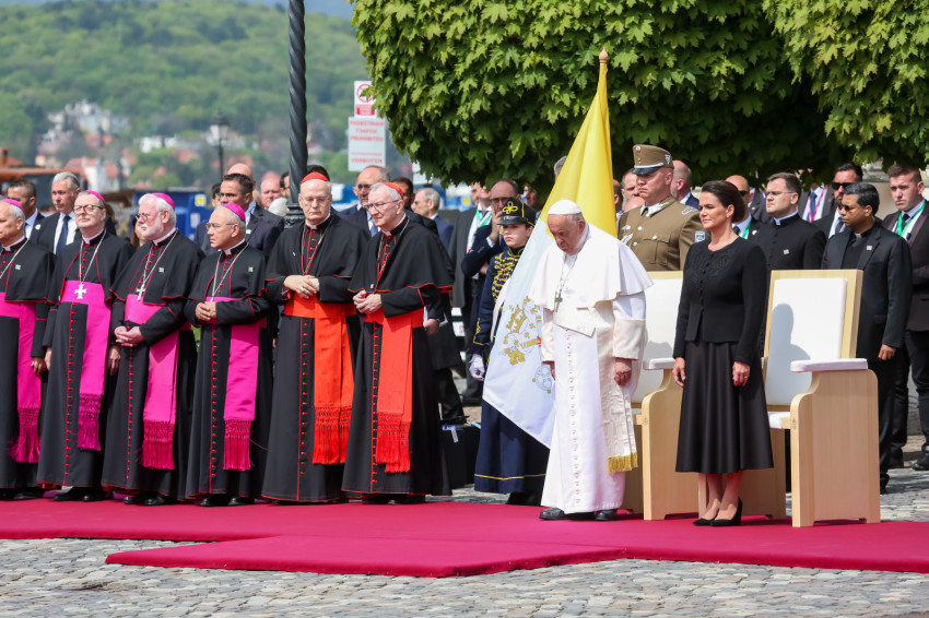 A hivatalos pápai és a magyar himnusz elhangzása után Ferenc pápa és Novák Katalin köztársasági elnök leült a kikészített székekre. Az eseményen többször is közvetlenül szót váltottak egymással.