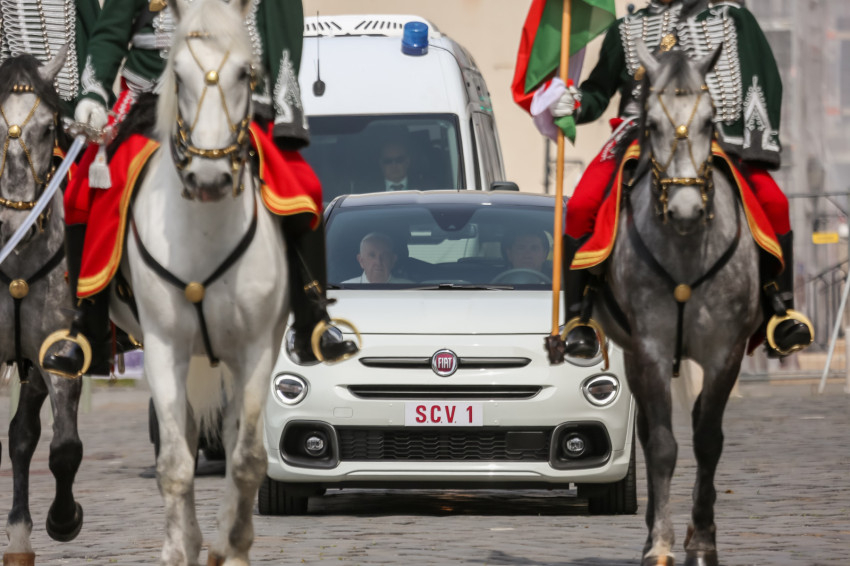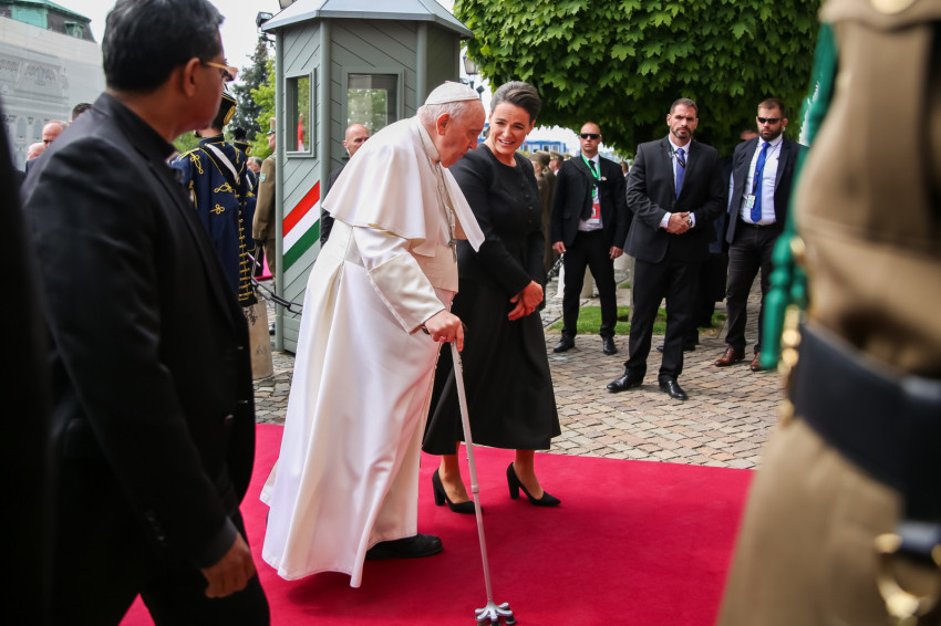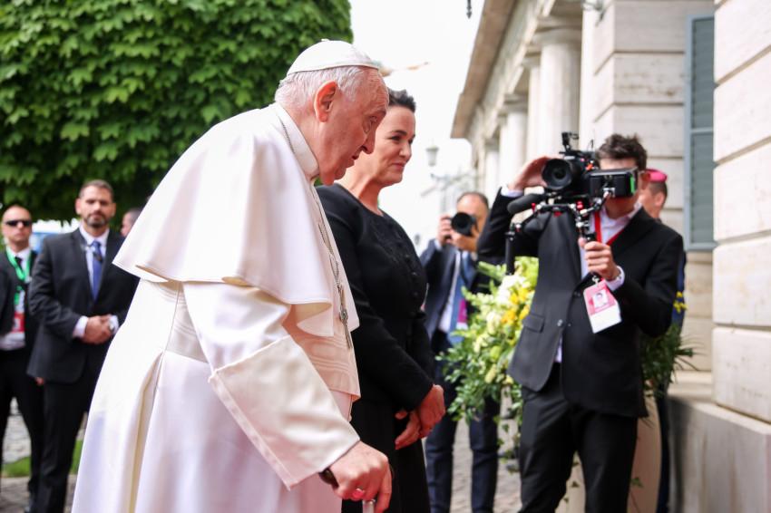 A Szent György téren történt ünnepélyes fogadás után Ferenc pápa az államfő kíséretében bement a Sándor-palotába, ahol udvariassági látogatást tett a köztársasági elnöknél, majd Orbán Viktor miniszterelnökkel találkozott.