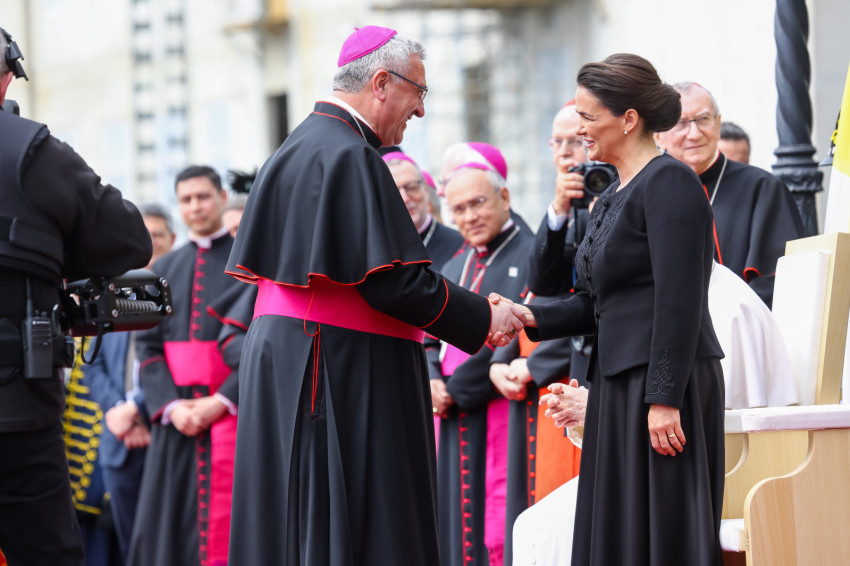 Ezt követően Ferenc pápa bemutatta a köztársasági elnöknek delegációja tagjait.