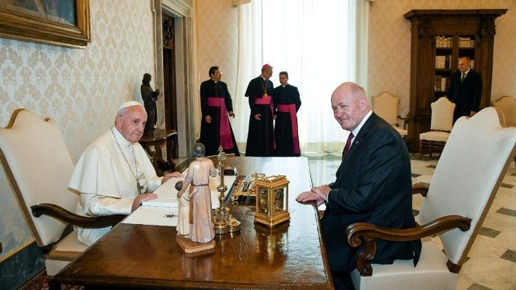 A politikus a pápai audiencia után találkozott Pietro Parolin bíboros államtitkárral és Paul Richard Gallagher érsekkel, az államközi kapcsolatok titkárával.